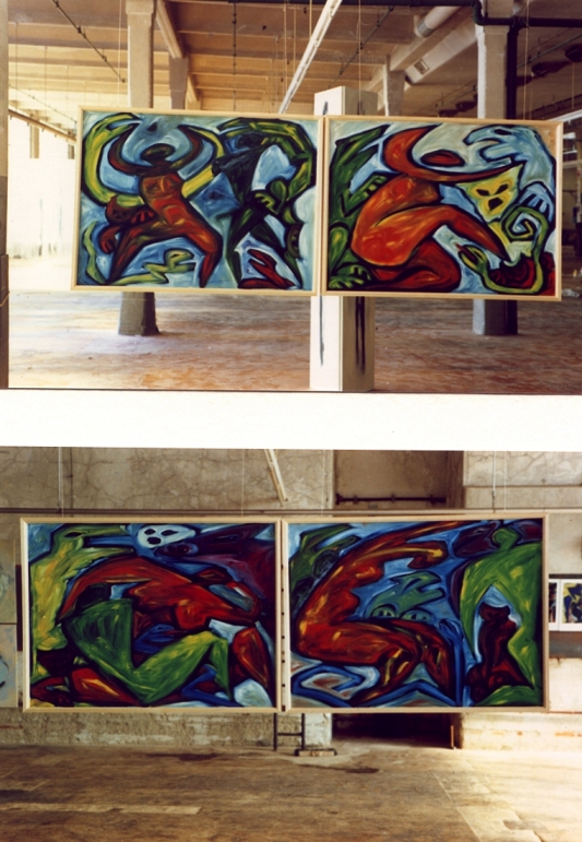 Strike back, Öl/Karton, 1989, 75x100 cmJulia und die Geister, Öl/Karton, 1989, 75x100 cm unten: