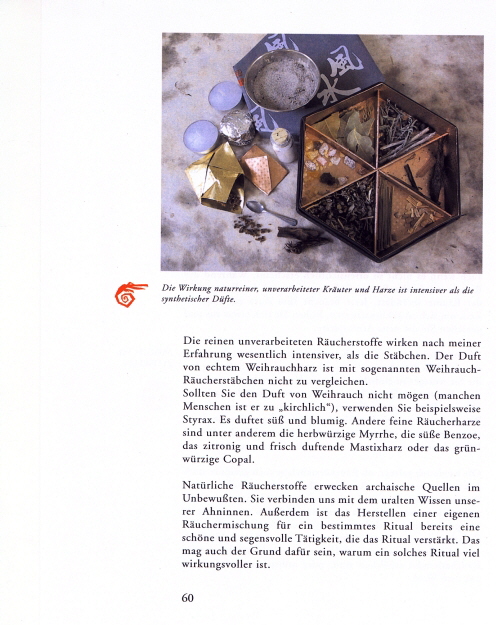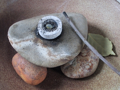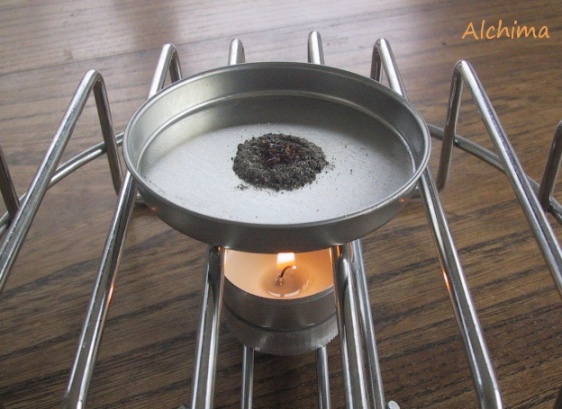 damit die Flamme näher am Räucherteller ist. Etwas Sand in der Mitte nimmt das Räucherwerk gut auf. Eine Messerspitze Räucherpulver beduftet ein ganzes Zimmer!